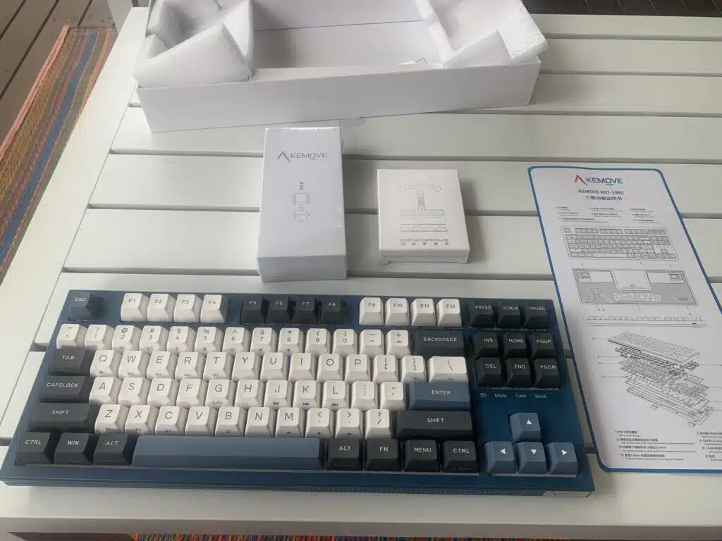 Kemove bundles the keyboard with a ton of extra gadgets- including a hybrid keycap and switch puller, as well as their 4-keycap puller. The 4 keycap puller is a really simple design, and it actually works a lot better than fishing keycaps out one at a time. I’m going to review it separately as I think it can be helpful for pretty much any keyboard in addition to Kemove boards.